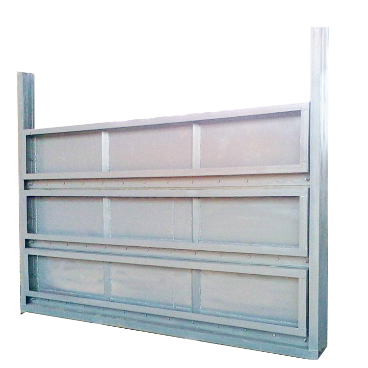 每塊閘板的高度一定,每塊的形狀都基本相同,每塊都有凸起和凹槽(或企口),凸起和凹槽內(nèi)鑲有止水膠條,這樣可以一塊一塊疊放起來,達到需要的高度而基本不漏水或無明顯的漏水。每塊閘板上還設有兩個拉環(huán),便于放下或取出。閘槽用鋼板折成[槽形,與渠道上預埋鋼板焊接安裝。依靠鋁合金疊梁閘上設置的彈簧和水壓的作用,止水橡膠受壓后與閘槽緊密貼合,止水效果良好。主要材質整體材質為鋁合金,鋼板的厚度與強度保證在運輸和安裝過程中,不受損,不變形,如有破損變形,予以可靠的修補。膠條嵌合牢固,長久使用也不脫落或斷裂老化。