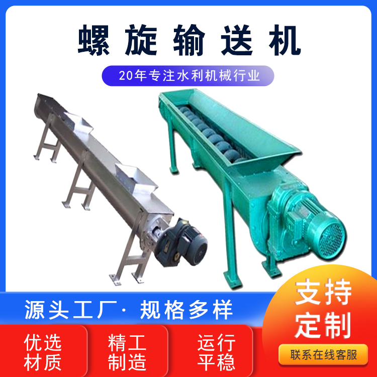 螺旋輸送機(jī)在輸送形式上分為有軸螺旋輸送機(jī)和無軸螺旋輸送機(jī)兩種,在外型上分為U型螺旋輸送機(jī)和管式螺旋輸送機(jī)。有軸螺旋輸送機(jī)適用于無粘性的干粉物料和小顆粒物料.(例如:水泥、粉煤灰、石灰、糧等)而無軸螺旋輸送機(jī)適合輸送機(jī)由粘性的和易纏繞的物料。(例如:污泥、生物質(zhì)、垃圾等)螺旋輸送機(jī)的工作原理是旋轉(zhuǎn)的螺旋葉片將物料推移而進(jìn)行螺旋輸送機(jī)輸送,使物料不與螺旋輸送機(jī)葉片一起旋轉(zhuǎn)的力是物料自身重量和螺旋輸送機(jī)機(jī)殼對(duì)物料的摩擦阻力。螺旋輸送機(jī)旋轉(zhuǎn)軸上焊的螺旋葉片,葉片的面型根據(jù)輸送物料的不同有實(shí)體面型、帶式面型、葉片面型等型式。