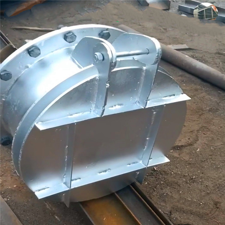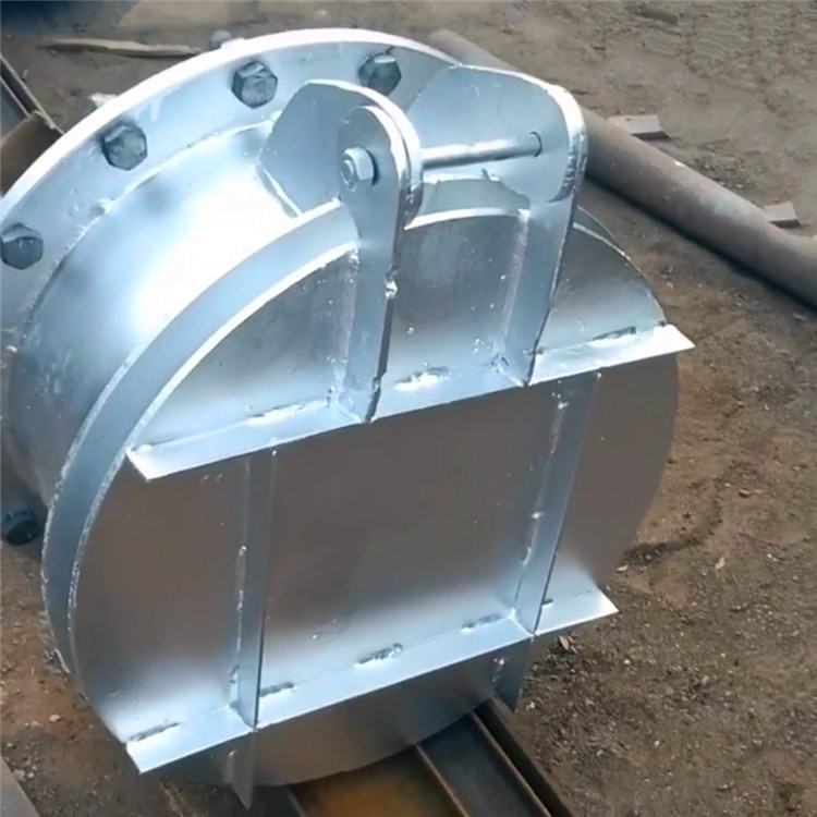 拍門主要由閥體、閥蓋、鉸鏈構(gòu)件組成,有鑄鐵和碳鋼兩種材質(zhì),其啟閉力來自水源壓力,不需人工操作。該拍門內(nèi)的水壓大于拍門外側(cè)壓力,則開啟;反之則關(guān)閉,已達到溢流和止回的作用。