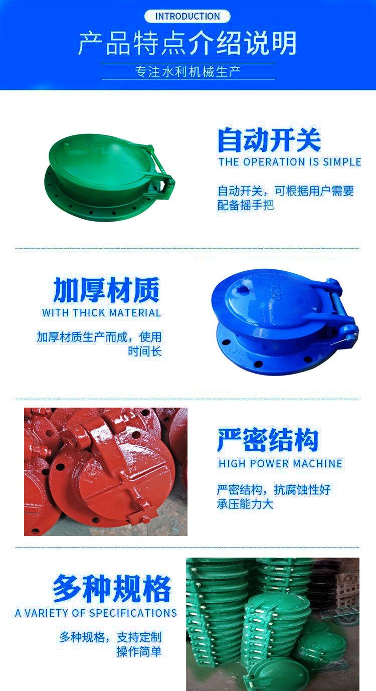 作者:榮程水利 來源: 日期:2018-7-13 10:48:36 人氣: 標簽:玻璃鋼拍門 拍門 鑄鐵拍門 雨水拍門 出水拍門 管道拍門