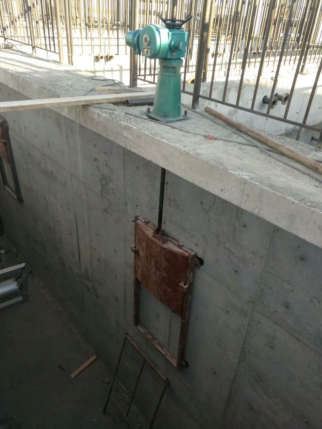11、閘門安裝用整體安裝,二期澆注,將閘板與閘框的封水間隙調到0.3mm以下,方可進行二期澆注。